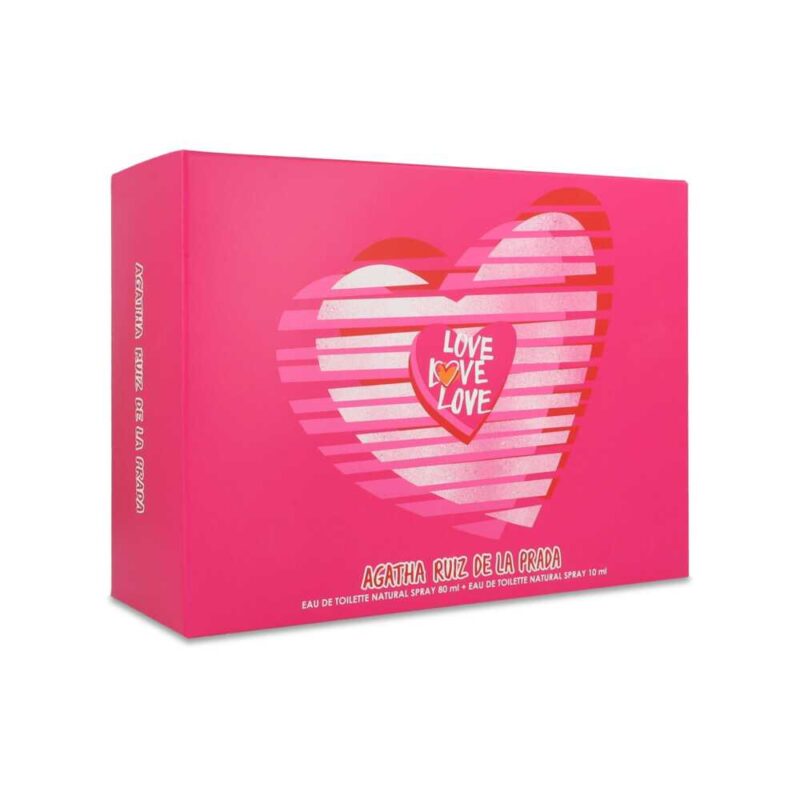 Love Love Love de Agatha Ruiz de la Prada es una fragancia encantadora de la familia Floral Frutal, ideal para la mujer que celebra la vida con cada aroma.