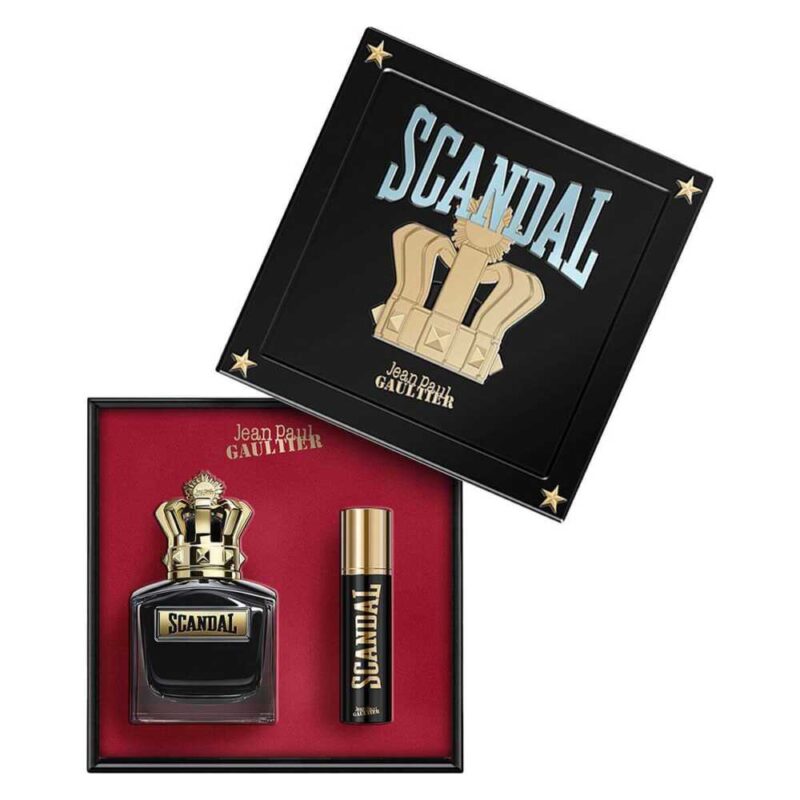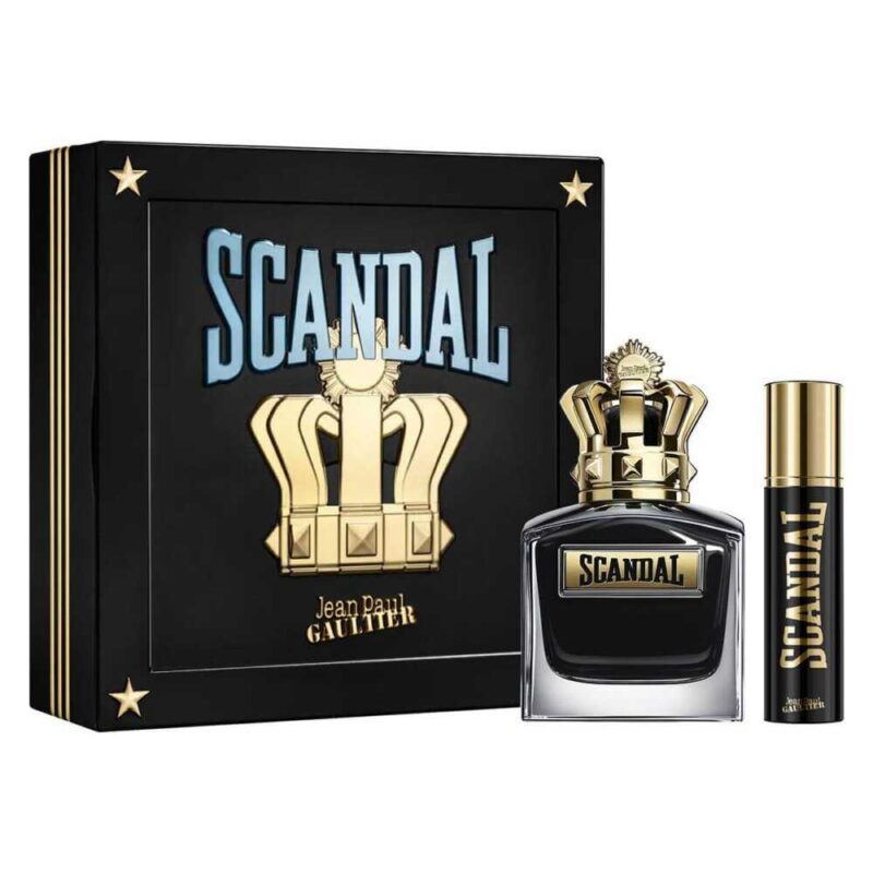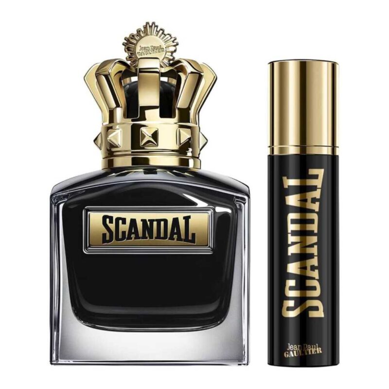 Set de regalo para hombre. Incluye EDT ‘Scandal Pour Homme’ 100ml y spray 10ml. Fragancia Ámbar Amaderada. (Nota: La familia olfativa de la fuente está incorrecta, es de hombre).