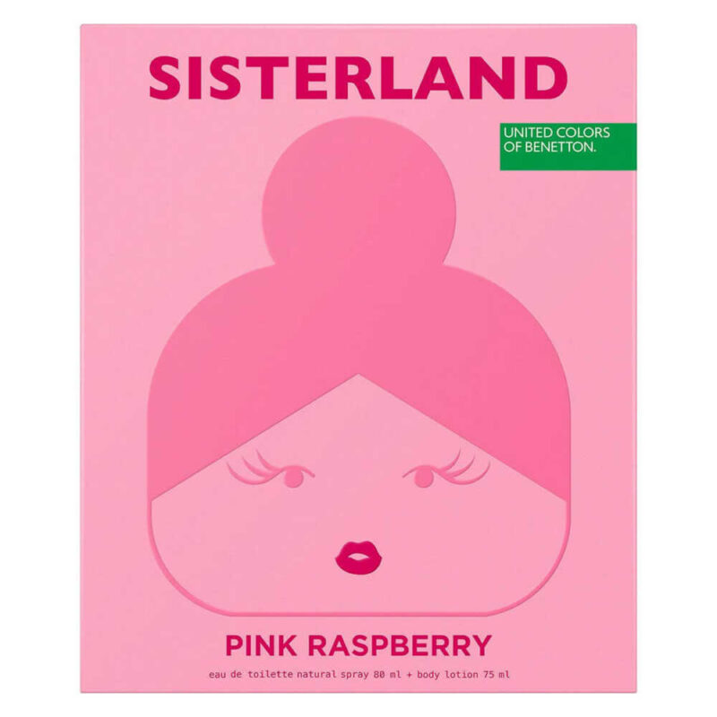 Sisterland Pink Raspberry de Benetton es una fragancia de la familia olfativa Floral para Mujeres. Sisterland Pink Raspberry se lanzó en 2021. Las Notas de Salida son frambuesa y grosella roja; las Notas de Corazón son flor de azahar del naranjo y fresia; las Notas de Fondo son almizcle y sándalo.